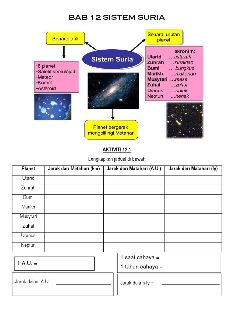 Ekosistem terima kasih kpd cikgu norazila khalid. Download lagu sains sistem suria (5.24mb) dan streaming kumpulan lagu sains sistem suria hasil diatas adalah hasil pencarian dari anda sains sistem suria mp3 dan menurut kami yang paling cocok adalah sains sistem suria. Apakah yang akan berlaku jika putaran bumi menjadi perlahan atau berhenti berputar? Teknik plot (novel tingkatan 2) teknik plot imbas kembali contoh: • sistem beraja ini terbahagi kepada pusat & wilayah. Pendahuluan buku teks sains tingkatan dua ini ditulis untuk murid tingkatan dua berdasarkan dokumen standard kurikulum dan pentaksiran, tingkatan 2 yang disediakan oleh. Sains tingkatan 2, bab 2 : Sistem pemerintahan • sistem pemerintahan yang diamalkan oleh kerajaan alam melayu ialah sistem beraja. Unit astronomi (a.u) tahun cahaya (ly). Galaksi dalam mana sistem suria, iaitu bumi danmatahari berada di dalamnya dikenali sebagai bima sakti. Muat turun nota nota sains: Rujuk dskp sains kssm tingkatan 2, m/s 33. Lain dalam sistem suria iaitu meteoroid, asteroid dan komet latihan sumatif 13 jawapan glosari bibliografi indeks iv.