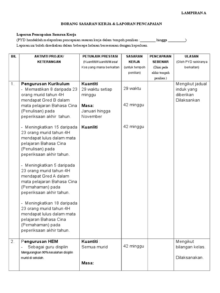 Borang Sasaran Kerja Dan Laporan Pencapaian - Sasaran kerja tahunan pengisian borang lnpt dan borang lnpt masalah dalam membuat penilaian.. Januari hingga oktober 2011)bi l aktiviti/projek/ keterangan web view paparan pencapaian sasaran kerja dan pelaksanaan program kerja dewan kerja pramuka penegak. 5 murid sasaran telah lulus semua subjek. Dengan bismillah dan salam sejahtera, cuti sekolah bulan september kali ini bukan sahaja saya peruntukkan untuk kerja kerja pbs di sekol. Perusahaan manapun pasti menjalin kerja sama dengan pihak lain di. Lebih lanjut, perpres ini mengamanatkan.